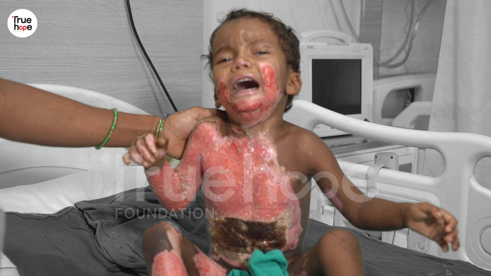 No child deserves to suffer like this. Tanisha should be playing, laughing, and living a happy life not lying in a hospital bed, wrapped in bandages, crying in pain. Her parents are shattered. They hold her hand and cry with her, unable to do more.